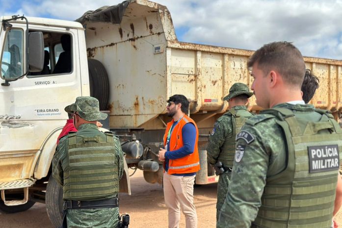A mesma equipe também flagrou uma área que recentemente foi alvo de extração ilegal de barro e cascalho, no mesmo município. Do local, foi retirado um grande volume desse material a fim de, possivelmente, deixar o terreno plano para futura construção.