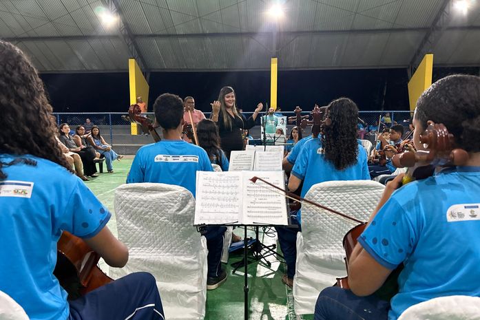 Durante a programação da aula inaugural foram realizadas apresentações musicais, conduzidas pelos professores da Orquestra e os alunos beneficiados. O recital foi distribuído em naipes, divididos por instrumentos de sopro e cordas, e este ano, a novidade do projeto foi a inclusão de um coral. Ao final do evento, a emoção tomou conta do público, que presenciou a orquestra tocando e cantando a música natalina “Noite Feliz”.
