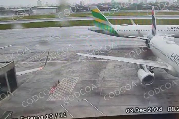 Dois aviões da Latam se chocaram enquanto se movimentavam no pátio do Aeroporto de Congonhas na manhã desta terça-feira (3). Ninguém se feriu.