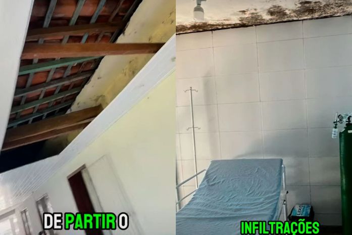 Nas imagens compartilhadas pelo gestor, é possível observar a presença de mofo e infiltrações em uma sala de atendimento médico, além de paredes desgastadas, obras paralisadas, terrenos baldios com acúmulo de lixo, prédios com problemas estruturais, sujeira acumulada, desabastecimento de remédios, equipamentos quebrados, entre outros problemas.
