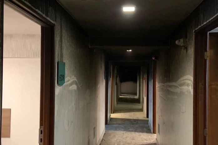 Nas imagens, é possível observar muita fuligem espalhada pelos corredores e quartos do andar atingido, além de móveis, tetos e materiais plásticos destruídos pelas chamas.
