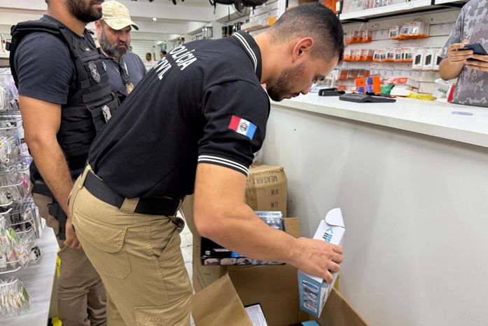 Policiais civis da Seção de Capturas, da Diretoria de Repressão à Corrupção e ao Crime Organizado (Dracco), em parceria com o Pocon/AL, realizaram nesta quinta-feira (23) uma operação em lojas que comercializam produtos como armas de gel e cigarros eletrônicos.