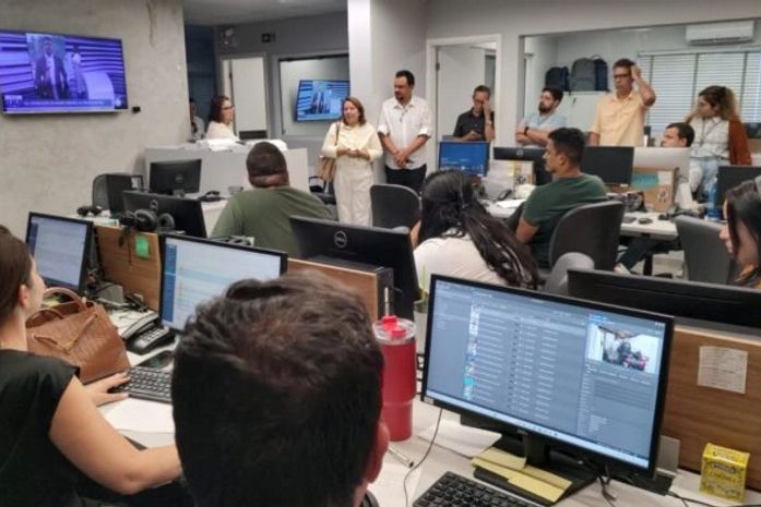 A presidenta da Federação Nacional dos Jornalistas (FENAJ), Samira de Castro, esteve em Maceió, de 28 a 30 de janeiro, em visita às redações, levando informações relevantes sobre a luta em defesa dos direitos dos jornalistas, do jornalismo e da democracia. A dirigente nacional esteve ao lado do presidente do Sindicato dos Jornalistas de Alagoas (Sindjornal), Alexandre Lino, e do secretário-geral, Erik Maia, e foi muito bem recebida pelos colegas alagoanos da Secom Maceió, TV Pajuçara, TNH 1, TV Gazeta, Jornal Gazeta de Alagoas, Gazetaweb e Gazetanews.
