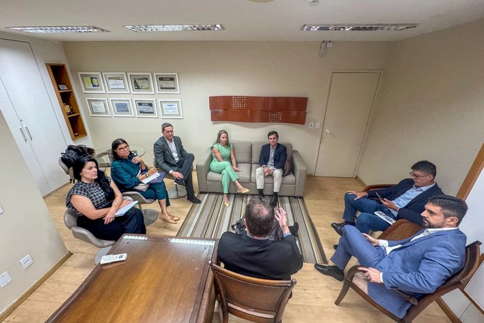 Ao lado do gerente de Apoio Institucional da entidade, Pedro Ferro, Marcelo Beltrão esteve reunido com a direção da Escola de Contas do Tribunal de Contas de Alagoas para discutir o fortalecimento da parceria entre os órgãos. O objetivo é aprimorar e ampliar a oferta de capacitações voltadas para servidores municipais, contribuindo para uma gestão pública mais eficiente e qualificada. A reunião contou com a participação da diretora-geral da Escola de Contas, conselheira Cleide Maria Bezerra, do diretor técnico da instituição, Perroneo Tojal, da assessora especial da Escola de Contas, Ana Cláudia Rodrigues Barros, da gerente de Comunicação da AMA, Zélia Cavalcanti, e do controlador-geral do município de Jequiá da Praia, Marçal Aranha.