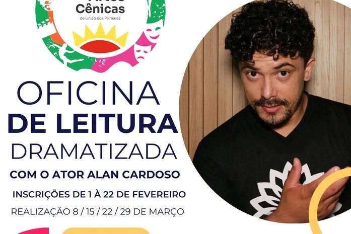A programação conta com, oficinas de leitura dramatizada com o próprio Alan Cardoso, oficina essa que é direcionada aos alunos da rede pública de ensino do União dos Palmares, estadual e municipal; As inscrições já estão abertas, vão até o dia 22 de fevereiro e podem ser feitas no link na bio do instagram da mostra https://www.instagram.com/mupudp/.