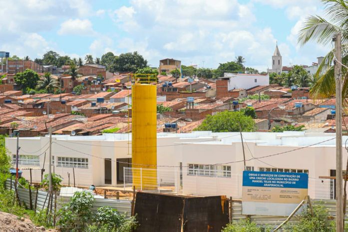 As obras de construção da creche estão avançadas e o prédio terá capacidade para atender 400 crianças, sendo 200 meninos e meninas em regime de tempo integral.