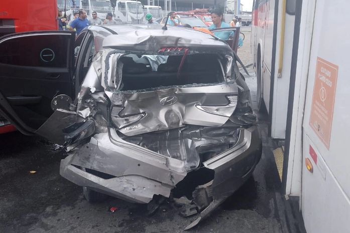 O CadaMinuto obteve imagens que mostram o Hyundai HB20 prata, dirigido pela vítima, com a traseira completamente destruída. Por outro lado, o ônibus sofreu danos apenas no lado direito da frente, afetando uma das portas de entrada. Veja abaixo: https://youtube.com/shorts/mb1o0EevfSM