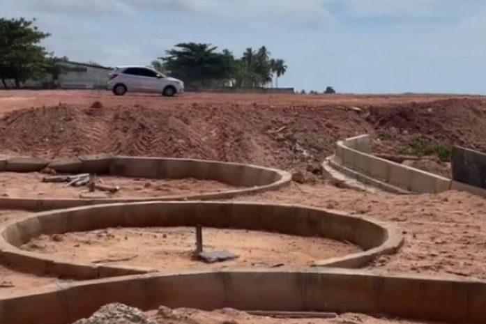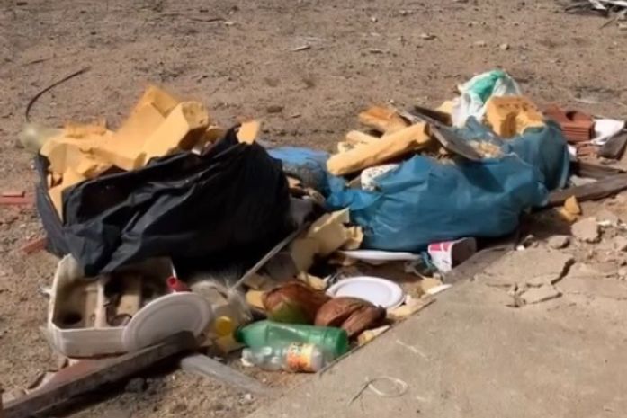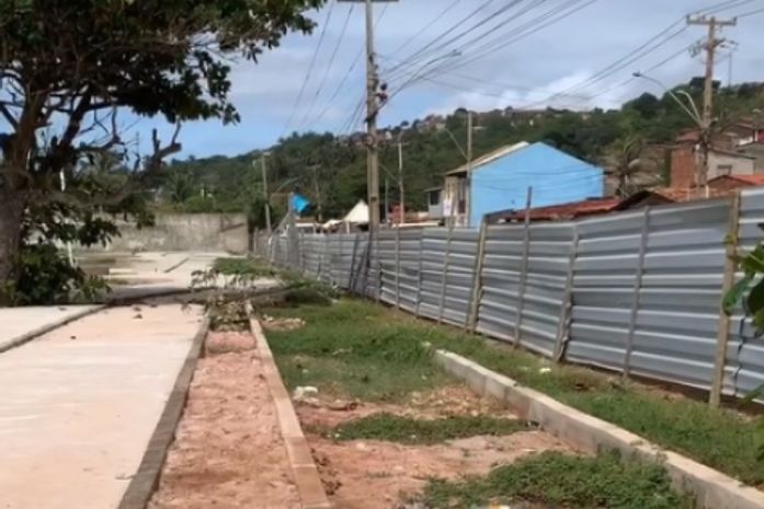Rui também denunciou o acúmulo de lixo e mato na área, evidenciando o abandono do espaço. A obra, que deveria ser entregue até o dia 18 de abril, está longe de ser concluída.