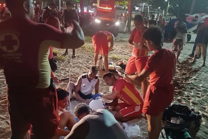 Já no local, os militares encontraram um homem baleado na faixa de areia em frente a um hotel. Ele apresentava três perfurações, duas no tórax e uma no pescoço.