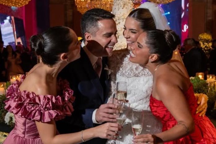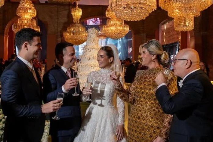 Após a bênção nupcial, os noivos receberam os convidados em uma recepção reservada, marcada por emoção, discursos calorosos e celebração à altura dos noivos.