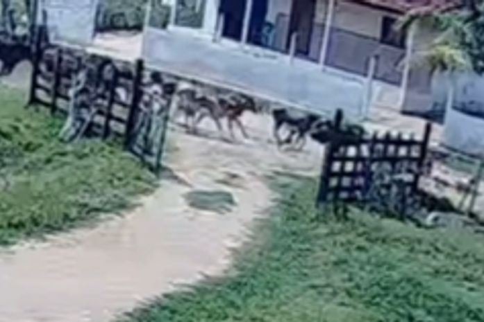 Nas imagens, é possível ver o menino correndo em direção ao primo, que estava prestes a atravessar a rua e cruzar o caminho da manada. Agindo de forma rápida, Matheus agarra a criança e se joga no chão, conseguindo salvá-lo dos animais, que logo passam em alta velocidade.