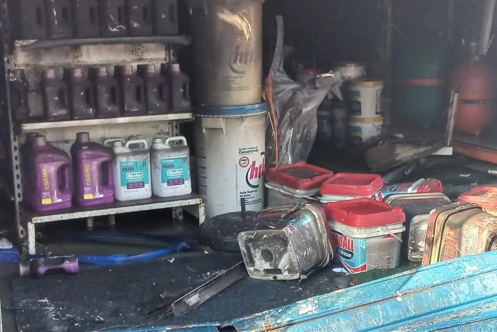 Boa parte do estoque foi destruída pelas chamas, que geraram uma fumaça densa devido à presença de produtos químicos, como cloro, armazenados no local.