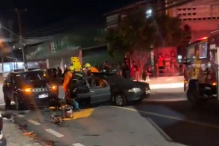 Uma colisão entre dois veículos deixou duas pessoas feridas, na noite dessa terça-feira (10), na Avenida Presidente Getúlio Vargas, no bairro Serraria, em Maceió. Uma das vítimas, uma mulher de 50 anos, ficou presa às ferragens e precisou ser resgatada pelos bombeiros.