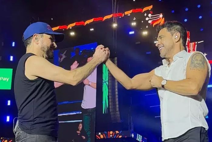 Além de Zezé e Luciano, a noite de São João de Caruaru ainda teve a apresentação de Leonardo. O cantor usou um colar estimado em R$ 30 mil em homenagem ao filho Zé Felipe e os netos.