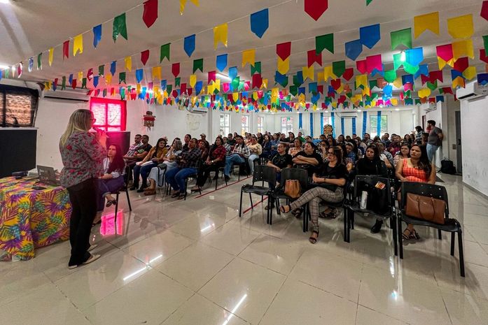 A Secretaria Municipal de Educação promoveu, nesta quarta-feira (25), uma reunião formativa estratégica para a o segundo semestre letivo. No evento, que aconteceu no auditório da Casa da Cultura, também foram apresentados os resultados da 2ª avaliação diagnostica da Educação Municipal.