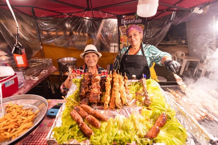 “A gente trabalha com petiscos e comidas regionais há mais de 30 anos. Participar do São João Massayó é sempre muito especial para a gente. Essas festas realizadas pela Prefeitura são muito importantes, porque, além de movimentarem a cidade, ajudam diretamente no nosso sustento. Eu faço parte de um grupo com mais três mulheres — somos em quatro — e a gente se divide para estar em todos os polos sempre que dá. Todas nós somos credenciadas e trabalhamos com muita dedicação. É uma oportunidade enorme, principalmente para quem vive do comércio como a gente”, afirmou a ambulante Karolayne Batista, que está entre os mais de mil trabalhadores credenciados para atuar nos polos da festa.