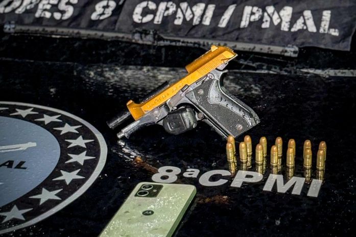 Imediatamente, os policiais procederam à abordagem. Na revista pessoal, foi confirmado que o volume se tratava de uma pistola calibre 380. Além disso, ele estava com 14 munições e um aparelho celular.