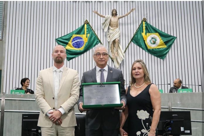 Em uma noite marcada por emoção e reconhecimento, a Assembleia Legislativa do Ceará concedeu, nesta quinta-feira (14), o título de Cidadão Honorário do Estado ao médico cirurgião cardiovascular infantil Dr. Valdester Júnior. A homenagem foi proposta pelo deputado estadual Guilherme Sampaio (PSB) e aprovada por unanimidade pelo plenário da Casa.