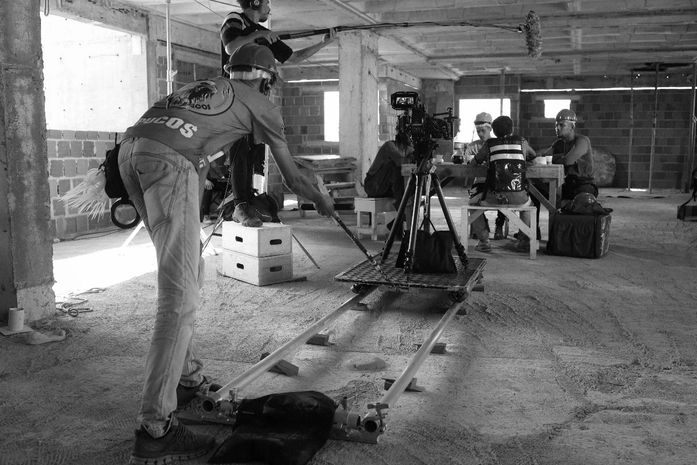 Filmando inteiramente em preto e branco, é protagonizado por Alaylson Emanuel e Caetano Vinicius Kedinha, além de contar com a participação de Jiray e Phelipe Ribeiro, fechando o grupo dos jovens trabalhadores. O elenco também conta com os veteranos Eron Villar e Luciano Pedro Jr.
