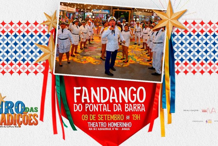 A segunda edição do “Giro das Tradições - No Caminho da Cultura Viva”, será realizada na próxima terça-feira, 9 de setembro, a partir das 19h, no Theatro Homerinho, no bairro de Jaraguá. A iniciativa, com entrada gratuita, é do Instituto de Vivências Artísticas (IVA), em parceria com a Secretaria de Turismo de Alagoas (Setur/AL), e receberá o grupo tradicional Fandango do Pontal da Barra. Os ingressos serão distribuídos 30 minutos antes do início.