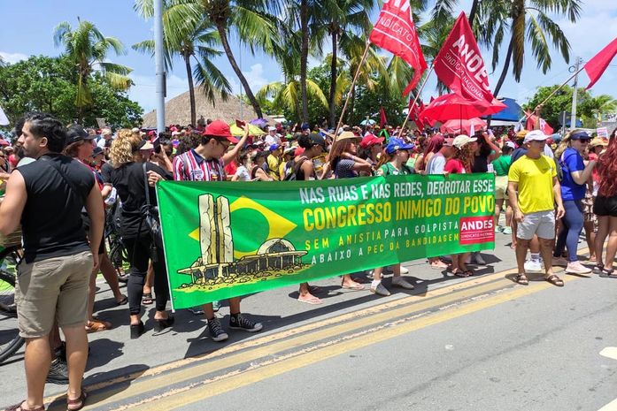 Além de protestarem contra a PEC, apelidada de “PEC da Bandidagem”, e contra a anistia, os manifestantes também defenderam o fim da escala de trabalho 6x1, considerada prejudicial aos trabalhadores.