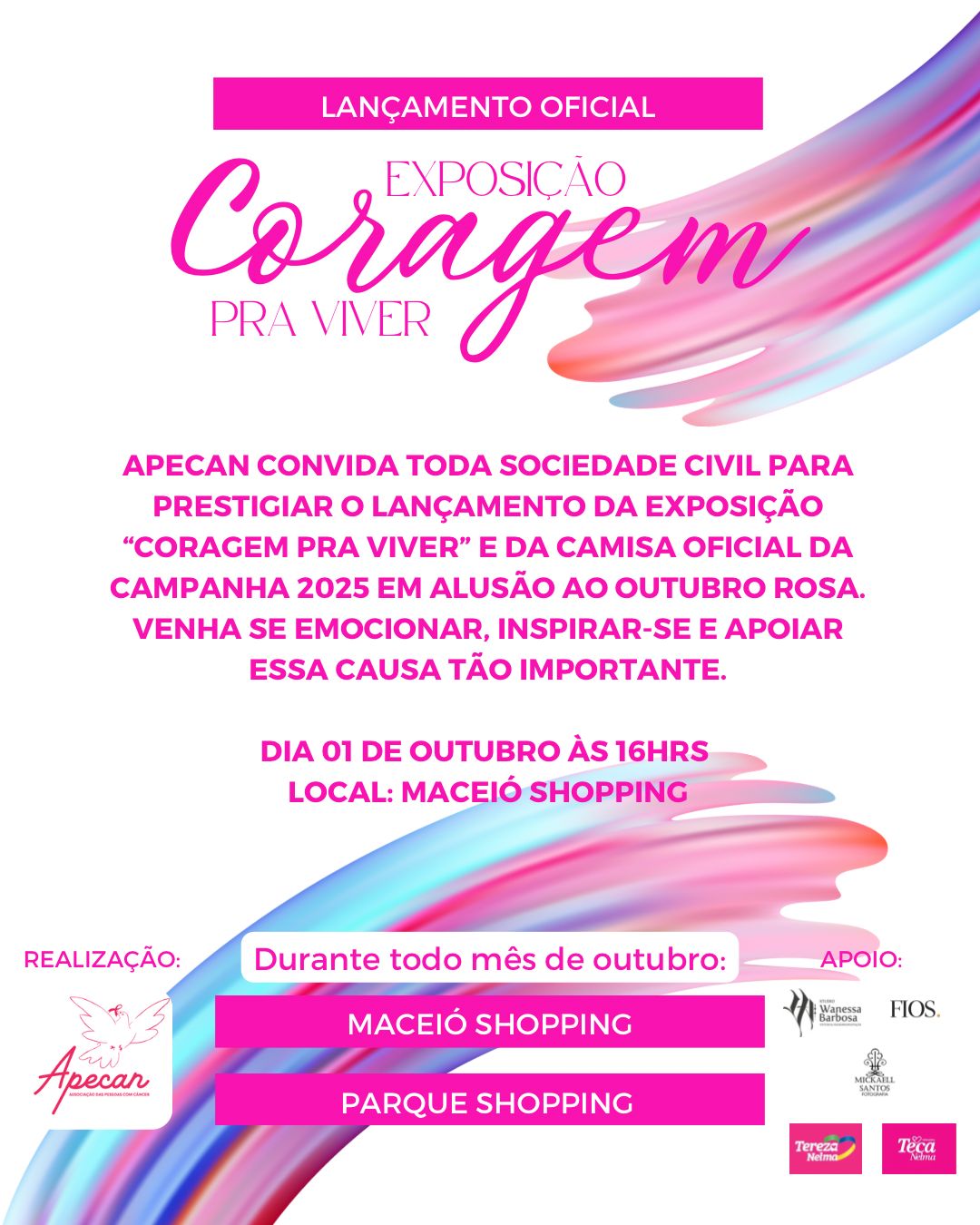 A exposição será realizada nos shoppings Maceió Shopping e Parque Shopping, levando ao público imagens que unem sensibilidade e força, destacando não apenas a prevenção e o diagnóstico precoce, mas também a importância de viver com qualidade mesmo diante dos desafios do câncer.