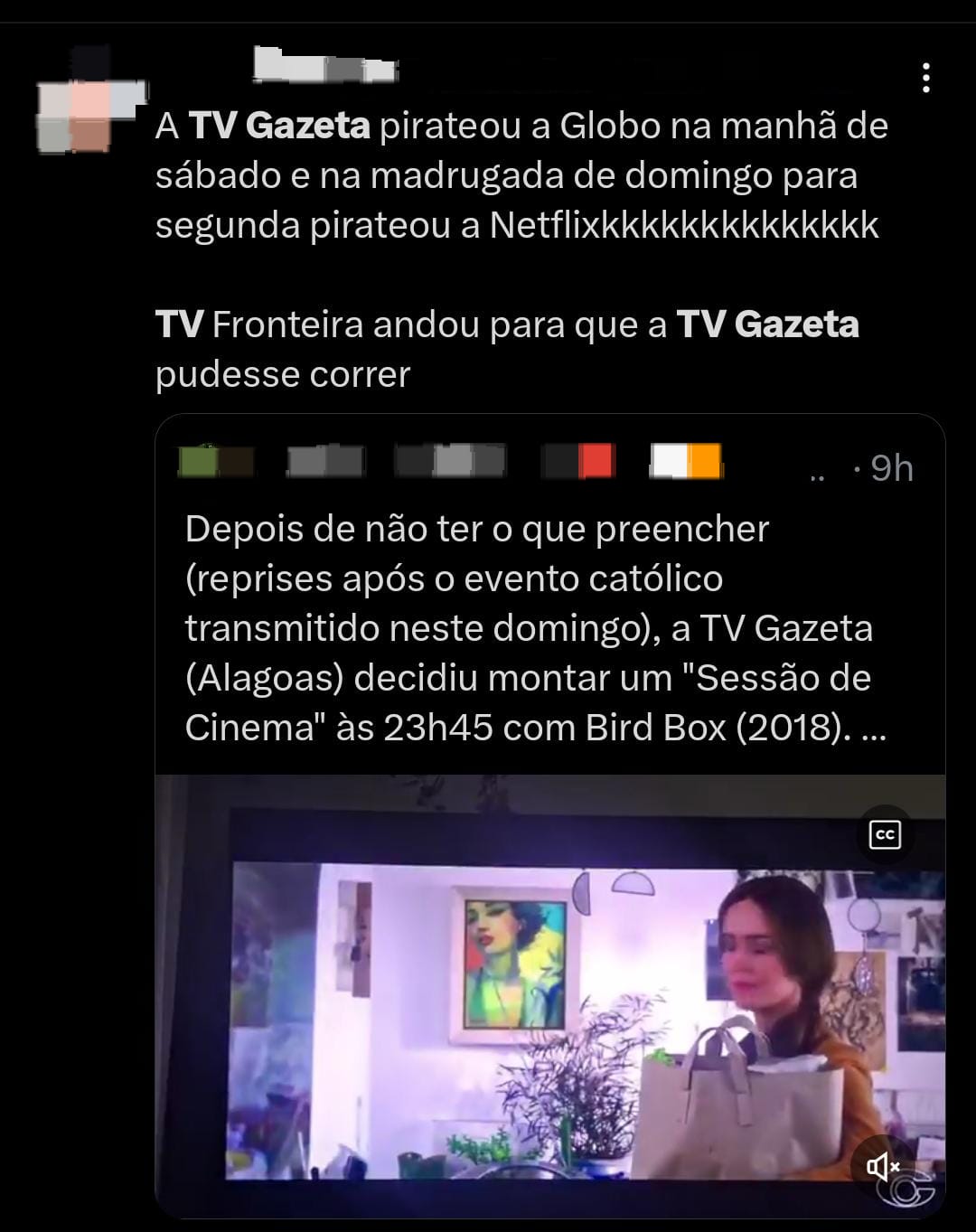 Na noite de domingo (28), após a transmissão de um evento católico, internautas acusaram a TV Gazeta de piratear conteúdo da Netflix ao exibir o filme Bird Box.