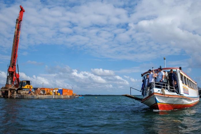 Renan e Paulo sobrevoaram o local e depois viram os serviços em embarcações. “Nós observamos o andamento da obra, muita gente trabalhando nessa ponte de 1.200 metros e lá em Neópolis, ela está avançada porque já sai na cidade e vai chegar aqui em Penedo, onde será feito um novo acesso para esse novo momento dessa região”, destacou Renan Filho, parabenizando o DNIT e as construtoras.