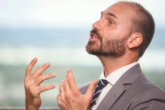 Agora vamos tratar do mundo de verdade. A Câmara Federal está diante de uma situação que se pode chamar de imperativo moral. O parlamento terá de cassar o mandato desse traíra confesso. Todas as ações do fujão resultam no flagrante crime de lesa-pátria. Ele agiu deliberadamente contra os interesses do país e suas instituições. A verborragia de Eduardo mistura cinismo, arrogância e claros delitos à Constituição brasileira.