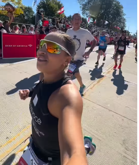 A maratonista completou a prova com emoção visível ao cruzar a linha de chegada no Grant Park, recebendo aplausos do público e de outros brasileiros presentes no evento.