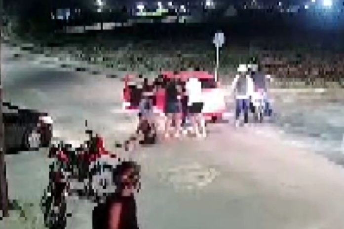 Imagens de câmeras de segurança flagraram o ataque. No vídeo, é possível ver o motociclista no chão após a colisão. Inicialmente, o motorista do carro desce do veículo e parece dialogar com a vítima.