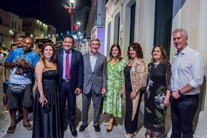 Emoção e diplomacia se encontraram na noite deste sábado (25), em Penedo, durante o circuito “Alagoas e Portugal em Cena”, que celebrou os 200 anos das relações entre Brasil e Portugal. O evento contou com a presença do embaixador de Portugal no Brasil, Luiz Faro Ramos, e da embaixatriz Cristina Ramos, acompanhados do secretário de Estado de Relações Federativas e Internacionais (Serfi), Júlio Cezar, e do prefeito de Penedo, Ronaldo Lopes.