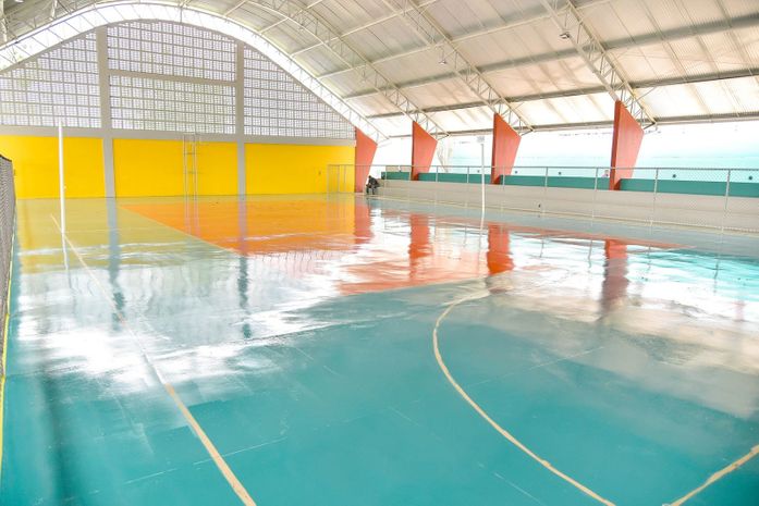 As obras compreenderam a recuperação integral da cobertura, garantindo segurança e conforto térmico ao público, além da pintura geral harmonizada com as cores da Escola Renilda Albuquerque, reforçando a identidade visual do complexo educacional e esportivo.