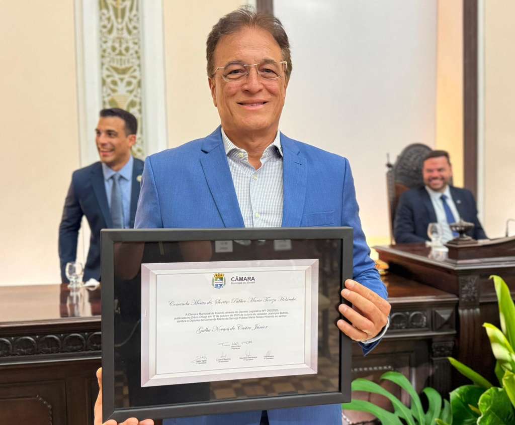 “A maior parte da minha vida foi dedicada ao serviço público, à ética e ao desenvolvimento de Maceió e de toda Alagoas, e, essa homenagem proposta pea vereadora Jeannyne Beltrão e aprovada por toda a Câmara, me deixa profundamente honrado. Cada função que assumi representa um grande aprendizado, me moldando como profissional e como cidadão comprometido com o bem comum. Sempre defendi que a política tem que estar a serviço das pessoas, por isso, desde cedo, meu caminho é pautado pelo trabalho, pela dedicação e pelo respeito ao próximo. Divido essa comenda com todos que acreditam em mim e compartilham dessa história”, afirmou Galba Novaes.