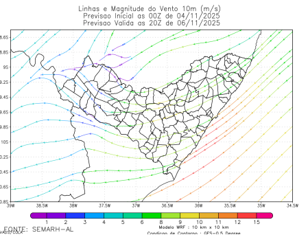 As rajadas de vento poderão ultrapassar 50 km/h em alguns períodos, nas regiões do Litoral, incluindo a Grande Maceió, e do Baixo São Francisco. De acordo com a SPDEN, o fenômeno está associado à atuação de um sistema de alta pressão atmosférica.