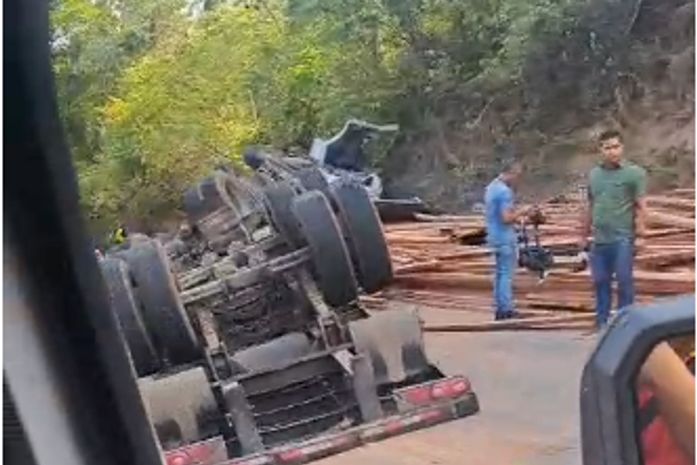 Uma carreta carregada com madeira tombou em um trecho da AL-105, em Maceió, na madrugada desta terça-feira (18). Parte da madeira foi saqueada por populares. Ainda não há informações sobre a dinâmica do acidente.