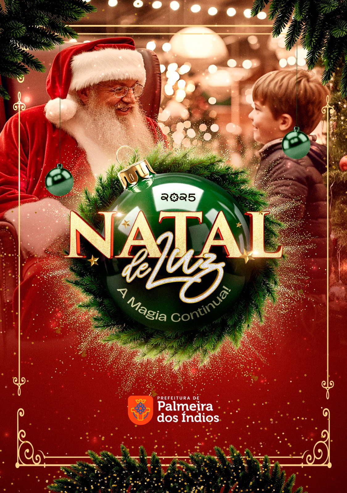 A magia do Natal se aproxima e a Prefeitura de Palmeira dos Índios já deu início aos preparativos para uma das festas mais aguardadas do ano, que celebra o nascimento de Jesus Cristo. Desde 2017, o Natal de Luz é realizado não apenas para iluminar a cidade com cores, arte e encantamento, mas também para celebrar o aniversário Daquele que trouxe fé, esperança e amor à humanidade.
