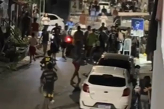 Moradores registraram imagens da rua logo após o crime, mostrando grande movimentação de pessoas no local.