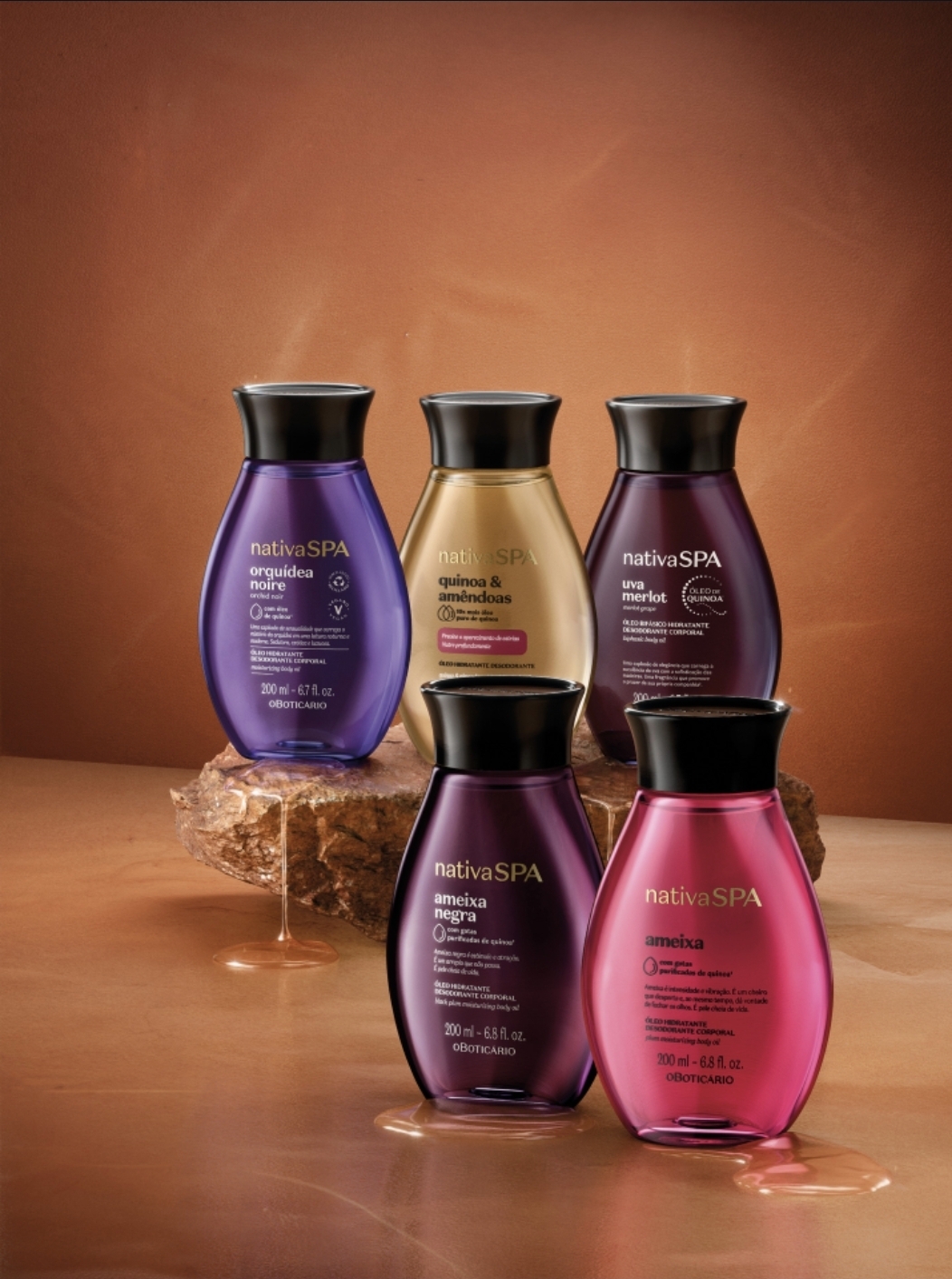 Além disso, pela primeira vez, o Boticário traz a possibilidade do uso de refis² dentro da categoria de óleos corporais, sendo um recurso já disponibilizado nas linhas fixas de Nativa SPA, que são: Ameixa; Ameixa Negra; e Quinoa & Amêndoas.