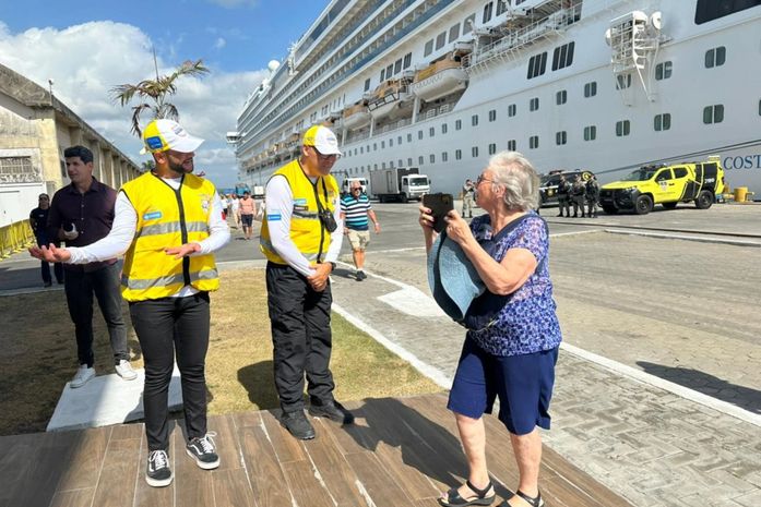 Agentes de proximidade bilíngues do Programa Ronda no Bairro realizaram, na manhã desta quarta-feira (19), a recepção aos turistas que desembarcaram no Porto de Maceió com a chegada do navio Costa Favolosa, de bandeira italiana. A embarcação trouxe mais de 3.700 visitantes e abriu oficialmente a temporada de cruzeiros 2025/2026, que contará com 33 atracagens até abril do próximo ano.