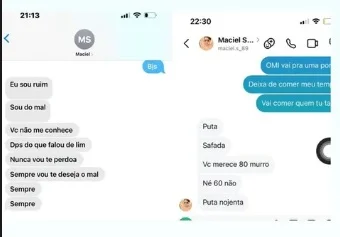 Prints que circulam nas redes sociais mostram supostas mensagens enviadas pelo agressor, incluindo uma em que ele diz: “Você merece 80 murros. ‘Né’ 60, não.” A autenticidade das mensagens é apurada pelas autoridades.