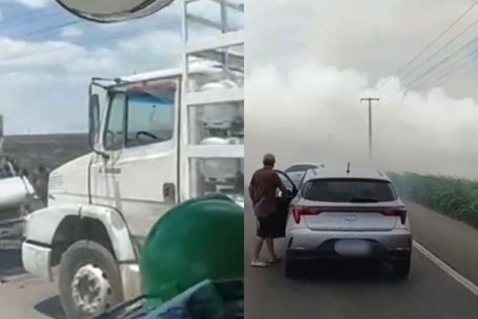 A fumaça de um incêndio em vegetação às margens da BR-316 provocou um engavetamento e uma colisão frontal entre um caminhão carregado com botijões de gás e uma caminhonete no distrito de Branca, em Atalaia, na manhã desta sexta-feira (5). Não houve registro de vítimas.