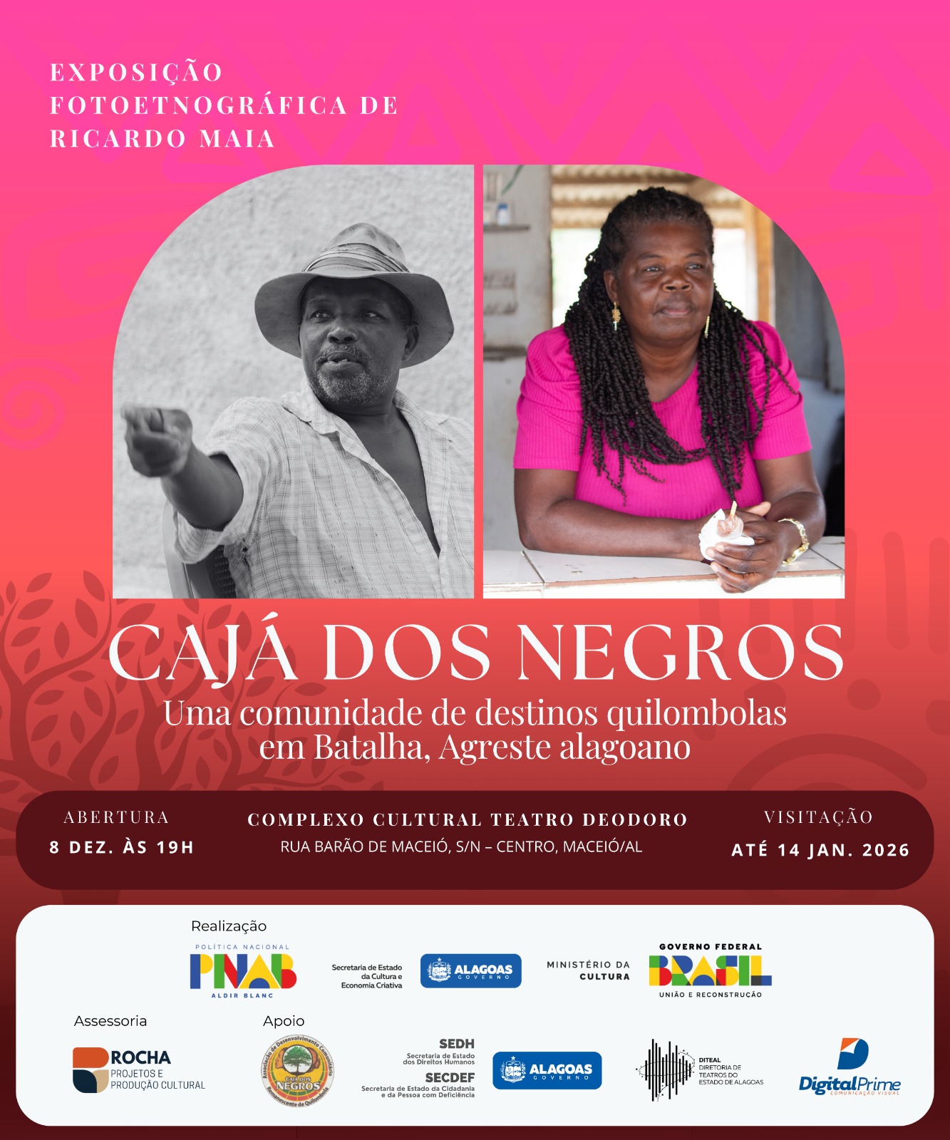 Segundo, Ricardo Maia: 'A exposição focaliza o espaço social comunitário quilombola e Intitula-se "CAJÁ DOS NEGROS: uma comunidade de destinos quilombolas em Batalha, agreste alagoano".