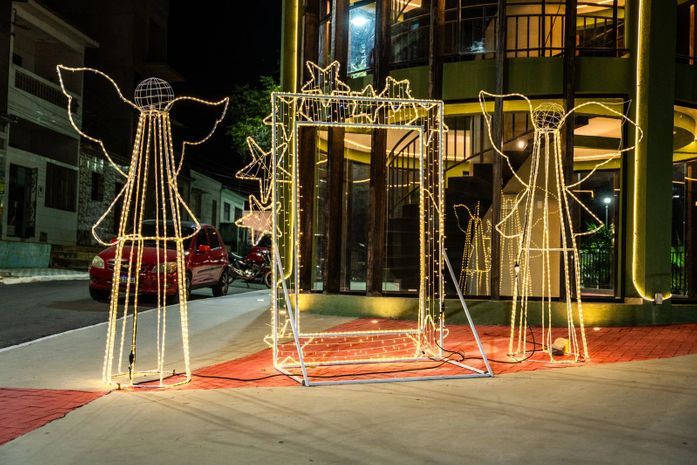 A equipe da Secretarias Municipal de Cultura não economizou nos detalhes e na iluminação. Luzes natalinas iluminam e brilham por toda a cidade.