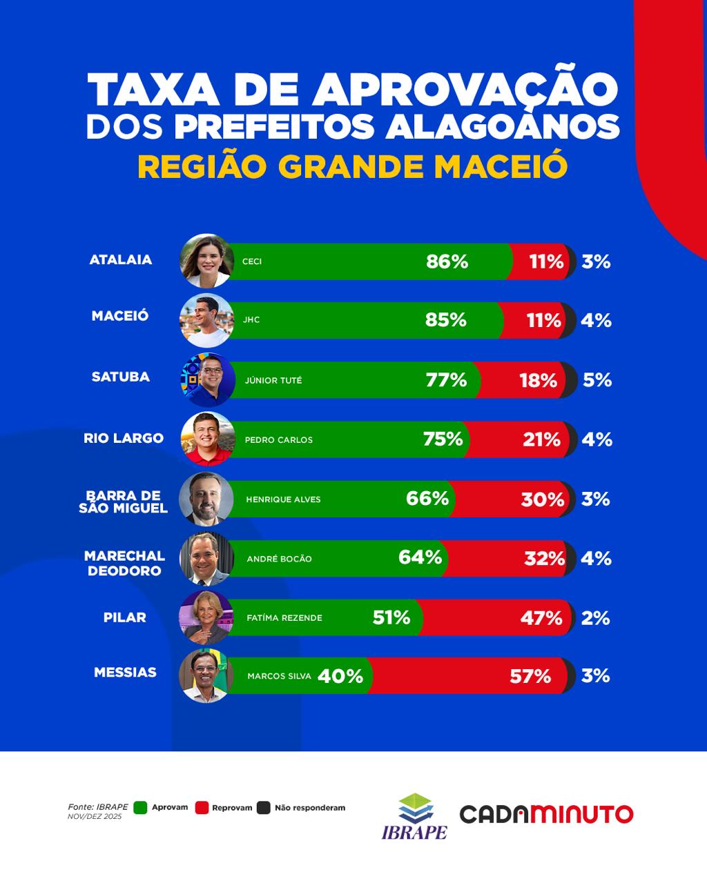 O instituto Ibrape, em parceria com o CadaMinuto, iniciou nesta segunda-feira (15) a divulgação de uma série de pesquisas sobre a avaliação das gestões dos 82 municípios mais populosos de Alagoas. O levantamento apresentado corresponde às cidades da Região Metropolitana de Maceió.