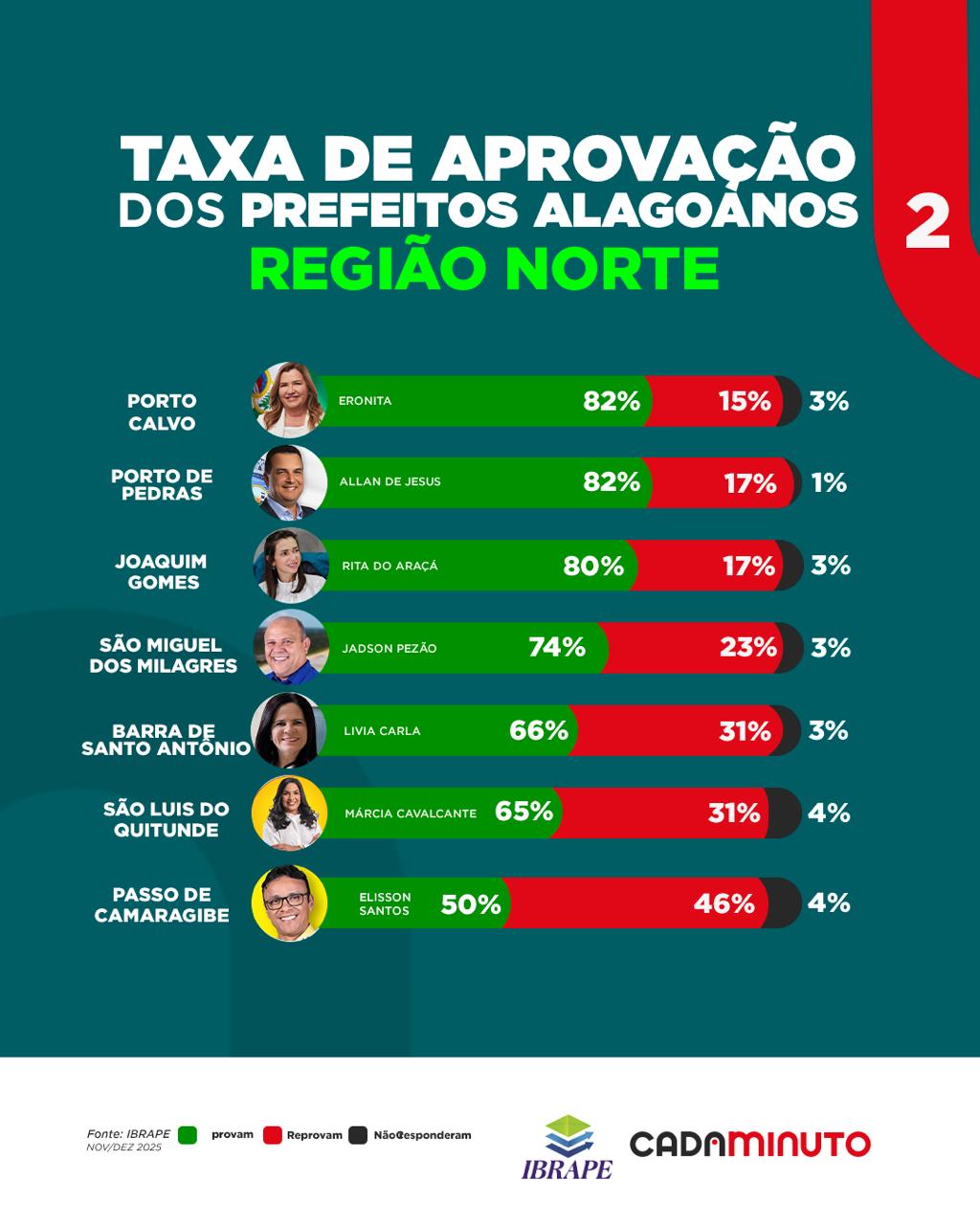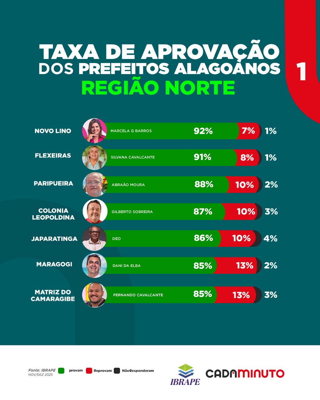 O instituto Ibrape, em parceria com o CadaMinuto, iniciou nesta segunda-feira (15) a divulgação de uma série de pesquisas sobre a avaliação das gestões dos 82 municípios mais populosos de Alagoas. O levantamento apresentado corresponde às cidades da região Norte do estado.
