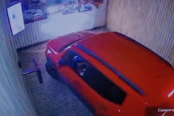 Imagens de uma câmera de segurança mostram o momento que um carro do modelo Jeep, na cor vermelha, chega ao local conduzido por uma mulher por volta das 21h. Logo depois, à 1h, o suspeito chega em uma motocicleta.