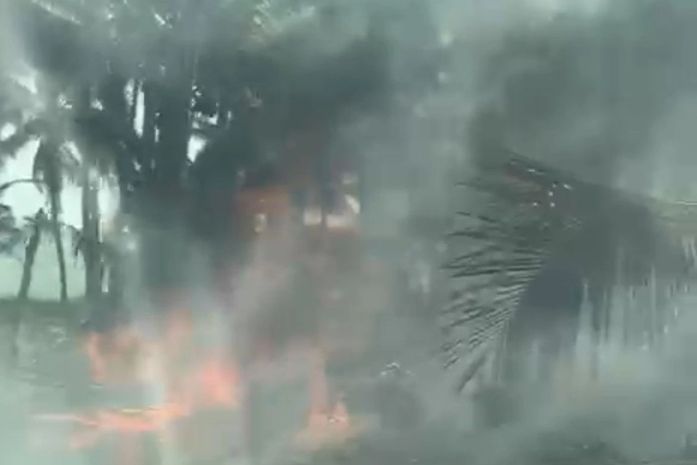 Conforme o relato de um motorista que passava pelo local, o coqueiro caiu sobre a rede elétrica e ocupou um lado da pista, no sentido litoral norte.