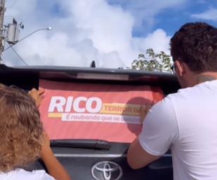 A pré-campanha também inclui vídeos de adesivagem de carros com material político, entre eles um veículo do mesmo modelo que chegou a ser apreendido pela Justiça durante o processo em que Rico foi investigado. Posteriormente, o influenciador firmou um acordo milionário com o Judiciário, encerrando as acusações ligadas à promoção de apostas online.