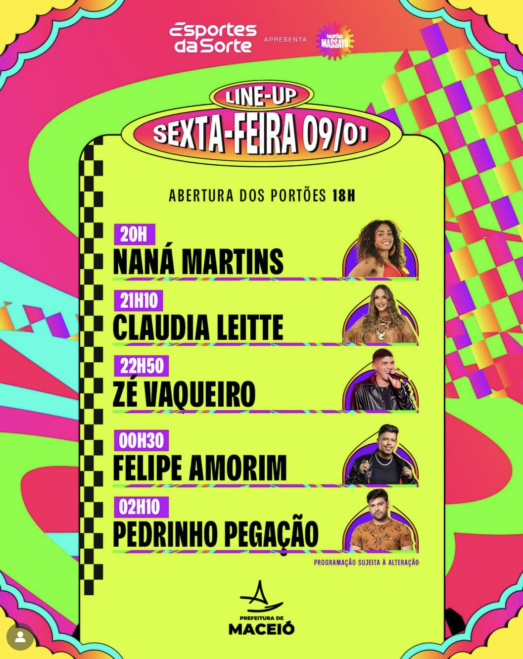 O Verão Massayó 2026 começa nesta sexta-feira (9) com uma maratona de shows no estacionamento de Jaraguá, em Maceió. A primeira noite do festival reúne atrações de diferentes estilos e marca o início de dois fins de semana de programação intensa na capital alagoana.